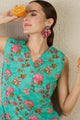 Dhiyona IE Floral Printed V-Neck Pure Cotton A-Line Kurta With Trouser