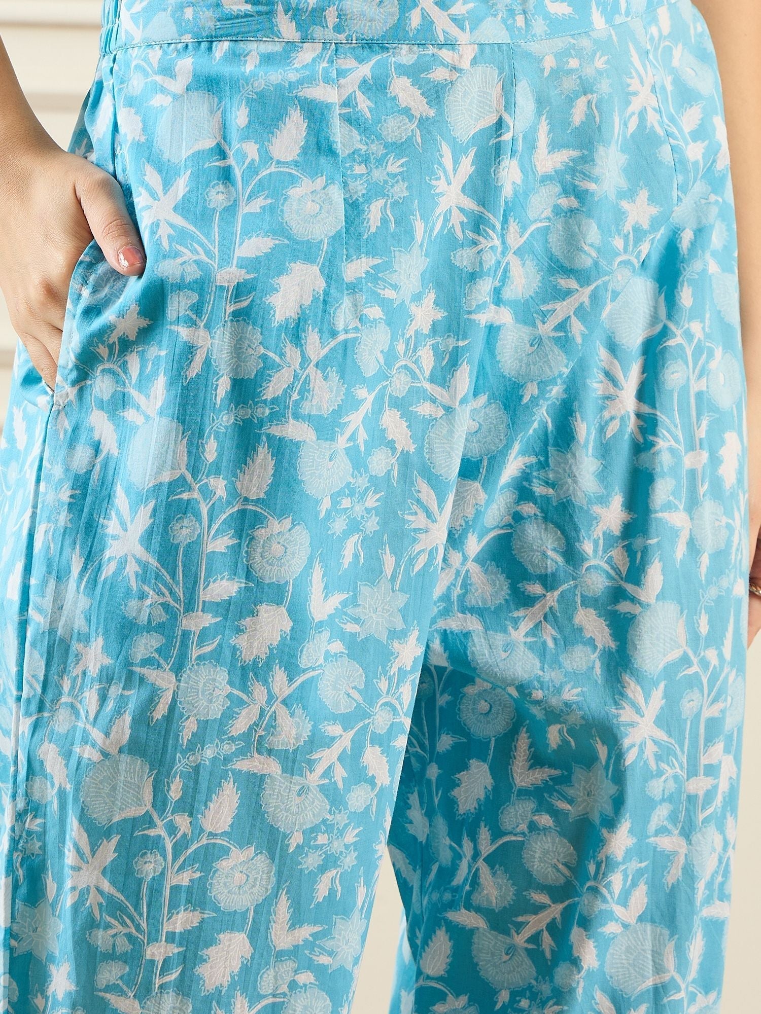 Dhiyona IE Floral Printed V-Neck Pure Cotton Straight Kurta With Trouser