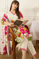 White, pink and green printed Kurta with Trousers with dupatta