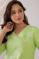 Dhiyona IE Floral Printed V-Neck Pure Cotton Straight Kurta With Trousers