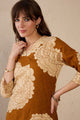 Mustard yellow and cream-coloured printed co-ords has tunic and palazzo