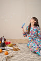 Blue, red and white printed co-ords has tunic and trousers