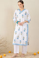 Dhiyona IE Floral Printed V-Neck Sequinned Pure Cotton Straight Kurta & Trouser With Dupatta