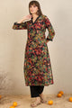 Dhiyona IE Floral Printed V-Neck Straight Kurta with Trousers
