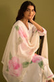 Dhiyona IE Floral Printed V-Neck Straight Sequinned Linen Kurta With Trousers And Dupatta