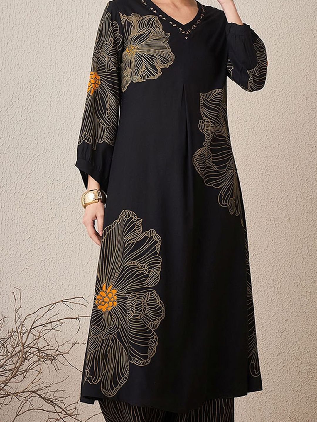 Dhiyona IE Floral Printed V-Neck Tunic With Palazzo