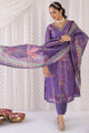 Lavender, red and green printed kurta with trouser and dupatta