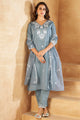 - Grey melange embroidered Kurta with Trousers with dupatta