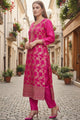 Pink and gold-toned woven design kurta & trouser with dupatta