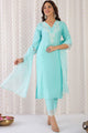 Dhiyona IE Floral Yoke Design Liva Straight Kurta With Trousers & Dupatta