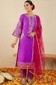 Dhiyona IE Floral Yoke Design Round Neck Thread Work Straight Kurta & Dupatta with Trousers