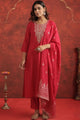 Red and gold-toned yoke design kurta with trousers and dupatta