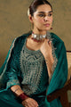 Teal and gold-toned embroidered kurta with trousers and dupatta