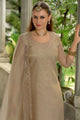 Brown, pink and gold-toned yoke design Kurta with Trousers with dupatta