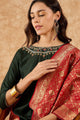 Green, red & gold toned yoke design kurta with trousers & dupatta