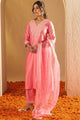 Pink & cream coloured yoke design kurta with trousers & dupatta