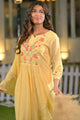 Yellow, pink and green yoke design Kurta with Trousers with dupatta