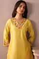 Yellow, pink and red embroidered Kurta and Trousers with dupatta