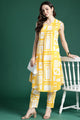 Dhiyona IE Geometric Printed Pleated Pure Cotton Kurta with Trousers