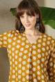Mustard-yellow, black & off white geometric printed top, has a v neck and three-quarter sleeves