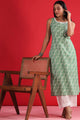 Dhiyona IE Geometric Printed Round Neck Sleeveless Gotta Patti Cotton Straight Kurta