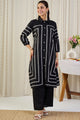 Dhiyona IE Geometric Printed Shirt Collar Straight Kurta With Trousers