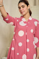 Pink and white printed kurta with trousers