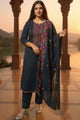 Dhiyona IE Geometric Yoke Design Thread Work Pure Cotton Kurta & Trousers With Dupatta