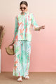 Dhiyona IE Green Abstract Printed Spread Collar Shirt With Palazzos