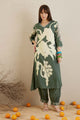 Dhiyona IE Green Floral Printed Sequinned V-Neck Straight Kurta With Salwar