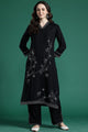 Black embroidered Tunic has V Neck collar, Three quarter Sleeves, Slip-on closure regular waist hem