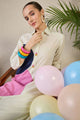 Off white solid trousers, has an elasticated waistband with slip-on closure