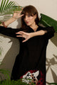 Black embroidered kurta, has a V-neck with three-quarter sleeves
