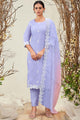 Dhiyona IE Lavender Floral Embroidered Round Neck Thread Work Kurta with Trousers & Dupatta