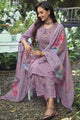 Dhiyona IE Lavender & Red Floral Embroidered Pure Cotton Kurta With Trousers & Dupatta