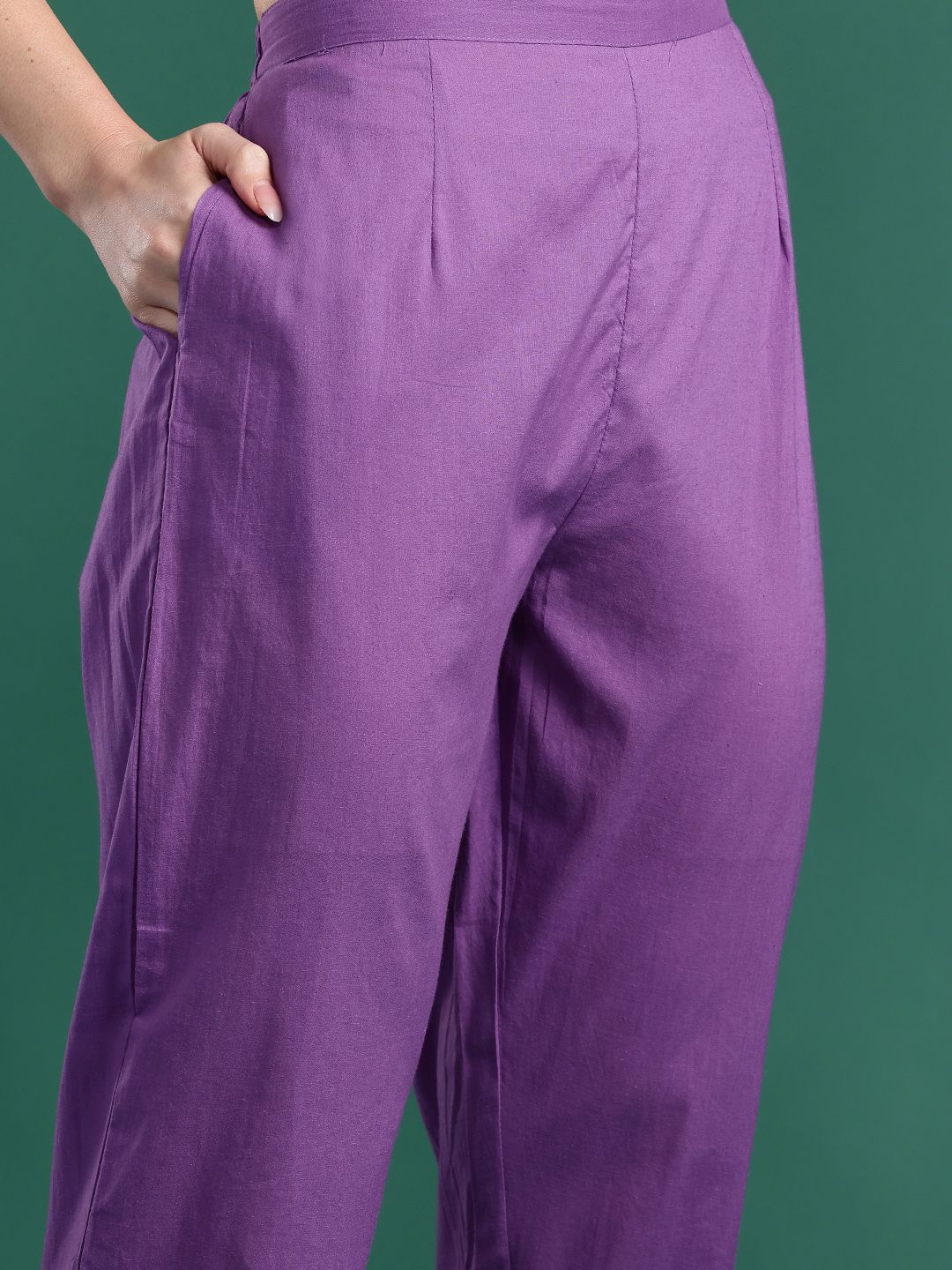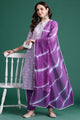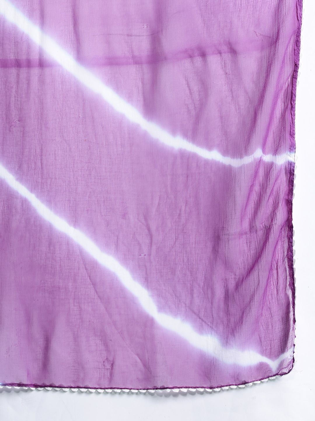 Dhiyona IE Leheriya Printed Thread Work Pure Cotton Kurta With Trousers & Dupatta