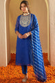 Blue , gold-toned and white printed kurta with trousers and dupatta