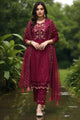 Dhiyona IE Maroon Floral Yoke Design Thread Work Straight Kurta & Trousers With Dupatta