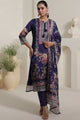 Dhiyona IE Motif Printed Notch Neck Chinon Mirror Work Straight Kurta & Palazzo With Dupatta