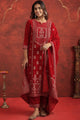 Dhiyona IE Motifs Embroidered Velvet Notch Neck Straight Kurta With Trousers & Dupatta