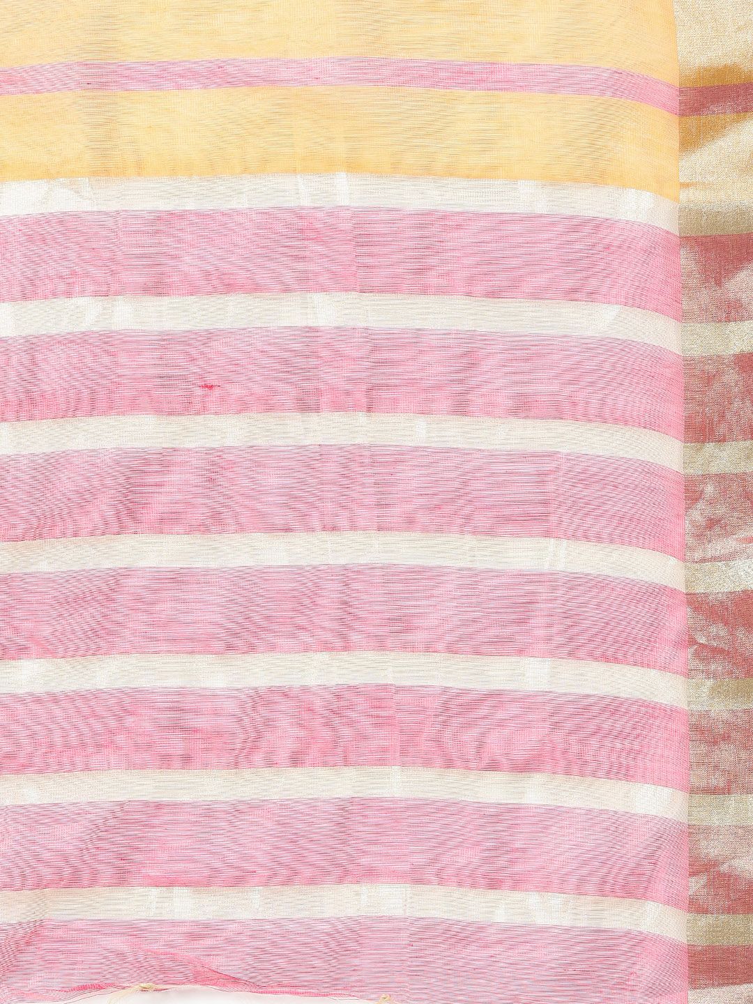 Bright pink and orange striped dupatta with golden accents and golden tassels along the border - Pure Cotton and Art Silk Dupatta, dry clean