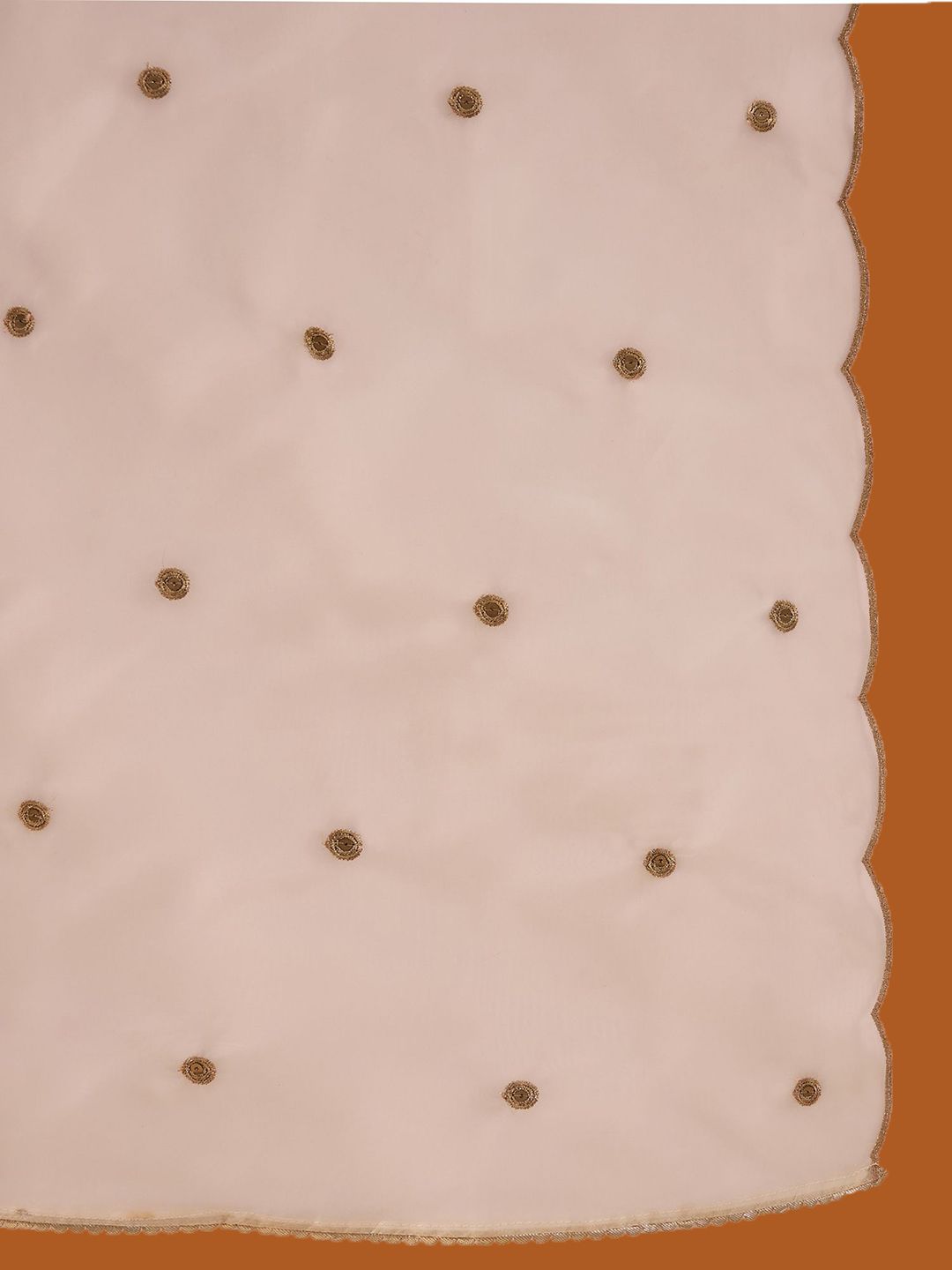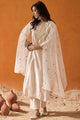 Dhiyona IE Off White Ethnic Motifs Embroidered Panelled Zari Kurta With Trousers & Dupatta