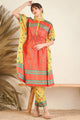 Orange printed Kurta with Trousers