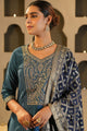 Dhiyona IE Paisley Yoke Design Sweetheart Neck Zari Straight Kurta & Trousers With Dupatta