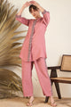 Dhiyona IE Pink Floral Printed Above Knee Shirt Collar Straight Kurta With Trouser