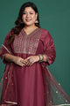 Burgundy embroidered Kurta with Trousers with dupatta
