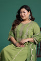 Dhiyona IE Plus Size Floral Embroidered Gotta Patti Kurta with Trousers & With Dupatta