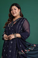 Dhiyona IE Plus Size Floral Embroidered Panelled Thread Work Kurta With Trousers & Dupatta