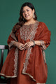 Dhiyona IE Plus Size Floral Embroidered Sequinned Liva Kurta with Trousers & With Dupatta