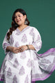 Dhiyona IE Plus Size Floral Printed Sequinned Pure Cotton Kurta with Trousers & With Dupatta